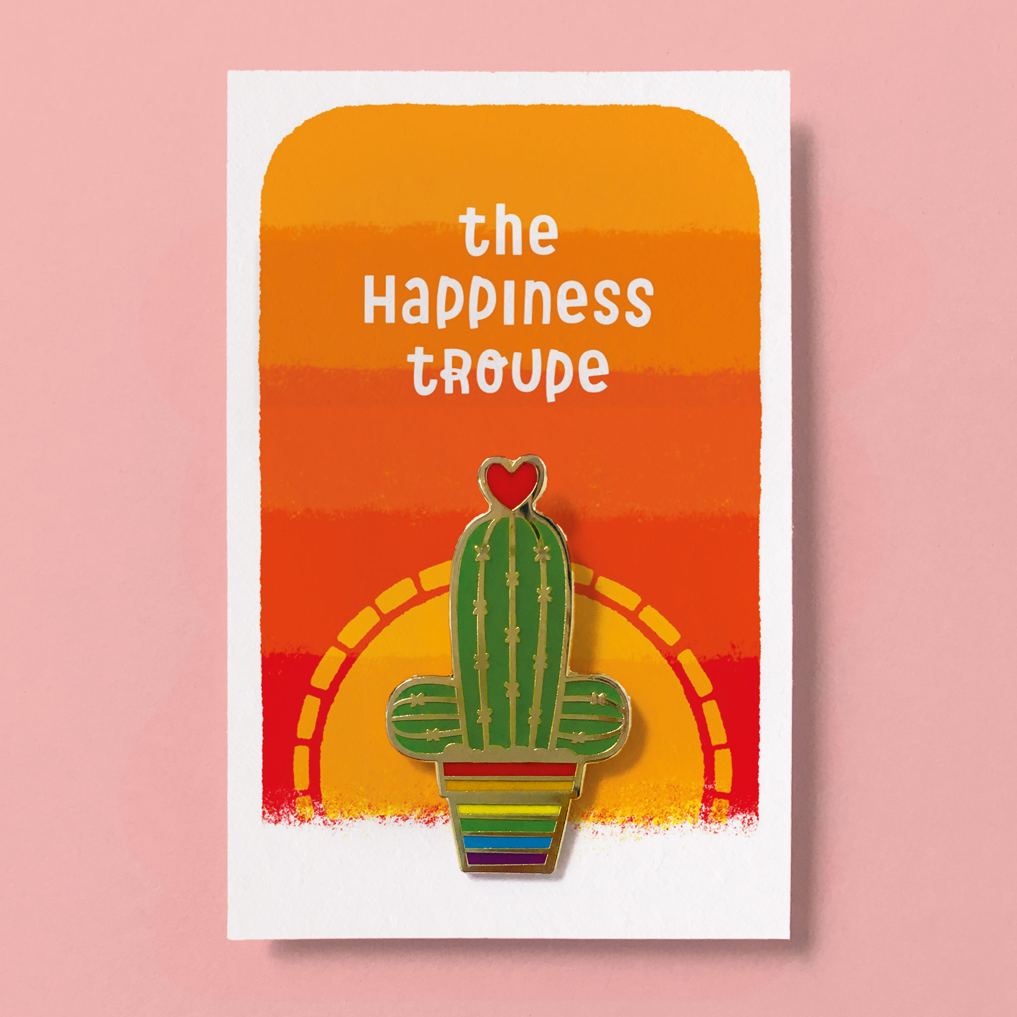This enamel pin was made to celebrate Pride. Pin to your lapels for extra handsomeness, or to your bag if the person behind you needs to see this very gay rainbow cactus pin.